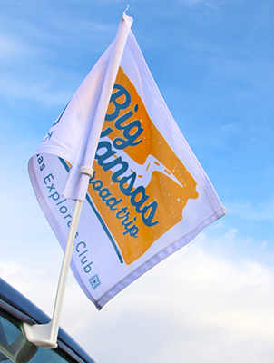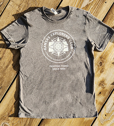 We have lots of styles and colors of tees, all in comfortable soft fabric. Each year, we sell merchandise (tees, BKRT car flags and guidebooks) at the Stump locations and Kansas Explorers Club meeting. Click here to find those locations. To find more merchandise and to place an order go to the kansassampler.org shopping page. See ya on the road!